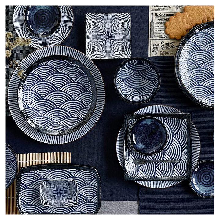 Тарелка Tokyo Design 18584 коллекции Aisai Seigaiha используется в барах, ресторанах, на других предприятиях общественного питания и в домашних условиях для подачи различных блюд. Модель квадратной формы оснащена плавно расширенным к кромке бортом. Изделие выполнено из высококачественного фарфора с белой поверхностью, декором синим паттерном морских волн в традиционном японском стиле и широким коричневым кантом на кромке. Цена указана за 1 шт. Особенности: