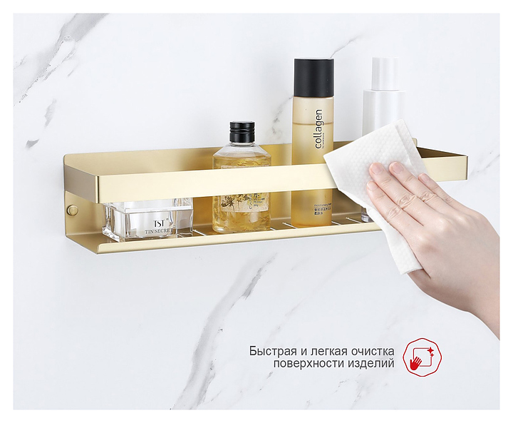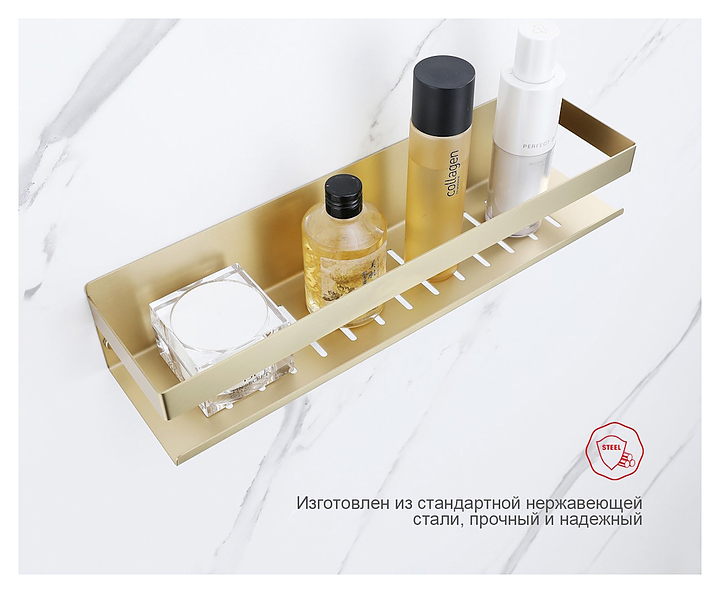Полка Raglo R340.03.03 используется в ванных комнатах для размещения банных принадлежностей. Модель монтируется на стену с помощью шурупов. Отверстия для слива воды предотвращают появление плесени и возникновение коррозии. Изделие выполнено из нержавеющей стали, которая отличается прочностью и долговечностью. В комплект поставки входят крепления. Характеристики: