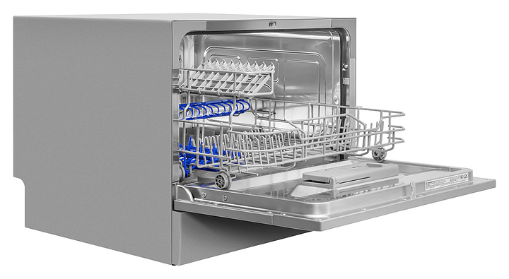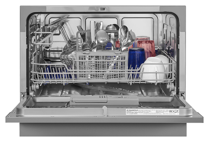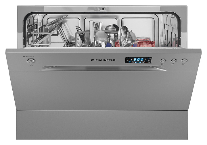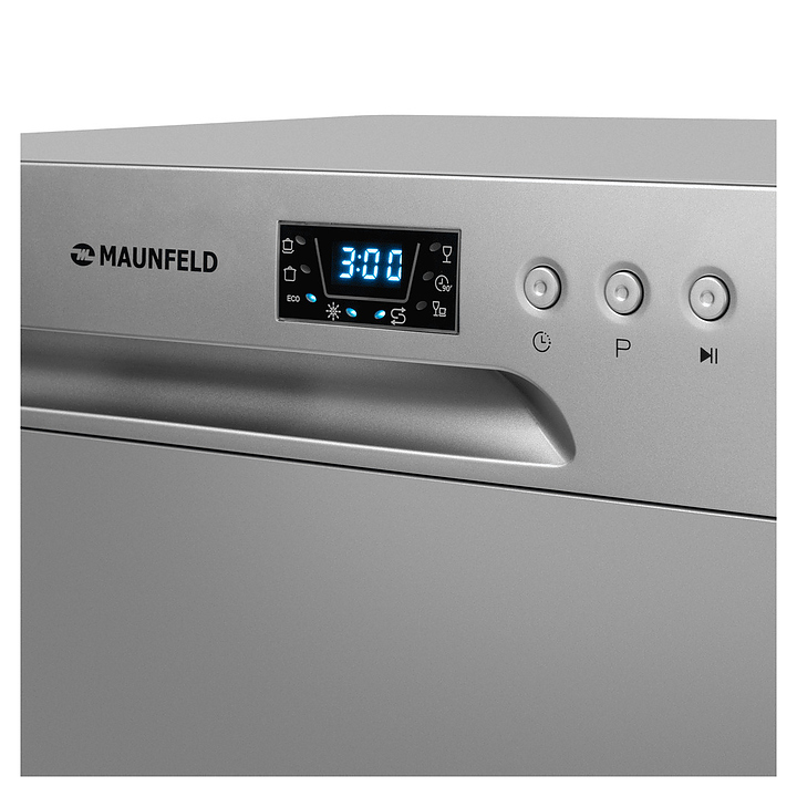 Посудомоечная машина Maunfeld MLP-06DS предназначена для гигиенической обработки и последующей сушки различной посуды в гостиничных комплексах и домашних условиях. Модель оснащена камерой с откидной дверью, нижним моечным рукавом, дозатором моющих и ополаскивающих средств, устройством умягчения воды, кабелем питания с вилкой, расположенной в верхней части фронта панелью управления с функциональными нажимными клавишами, светодиодными сигнальными лампами и цифровым дисплеем с голубой подсветкой индикации. Внутренняя облицовка камеры и двери выполнена из высококачественной нержавеющей стали марок AISI304 и AISI430, внешняя облицовка корпуса цвета нержавеющая сталь.