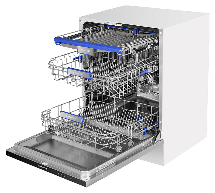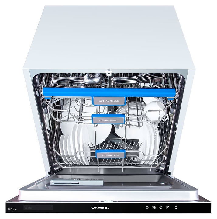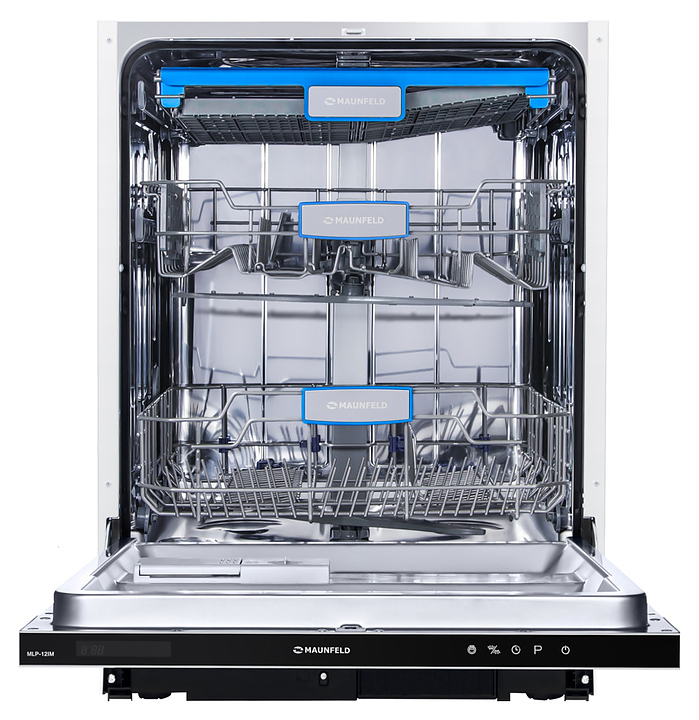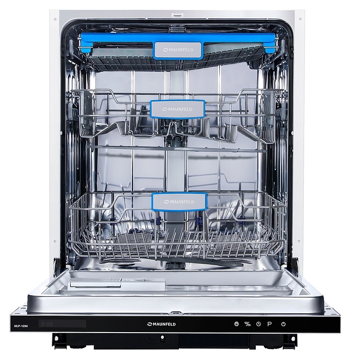 Встраиваемая посудомоечная машина Maunfeld MLP-12IMпредназначена для гигиенической обработки и последующей сушки различной посуды в гостиничных комплексах и домашних условиях. Модель оснащена камерой с откидной дверью с интегрированной рукояткой, верхним и нижним моечными рукавами, дозаторами моющих и ополаскивающих средств, устройством умягчения воды, кабелем питания с вилкой, расположенной на верхнем торце двери панелью управления с функциональными сенсорными клавишами, светодиодным дисплеем с цифровыми и символьными сегментами с белой подсветкой индикации. Внутренняя облицовка камеры и двери выполнена из высококачественной нержавеющей стали марок AISI304 и AISI430, корпус – из металла с антикоррозийным покрытием, панель управления – из полимера черного цвета.