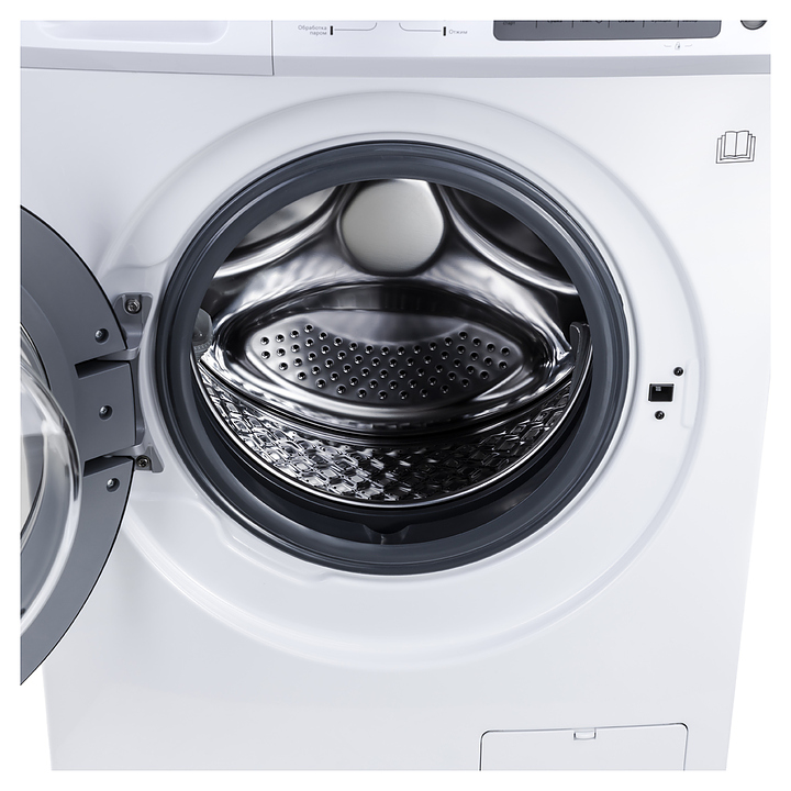 Люк большого диаметра для удобства загрузки и выгрузки белья