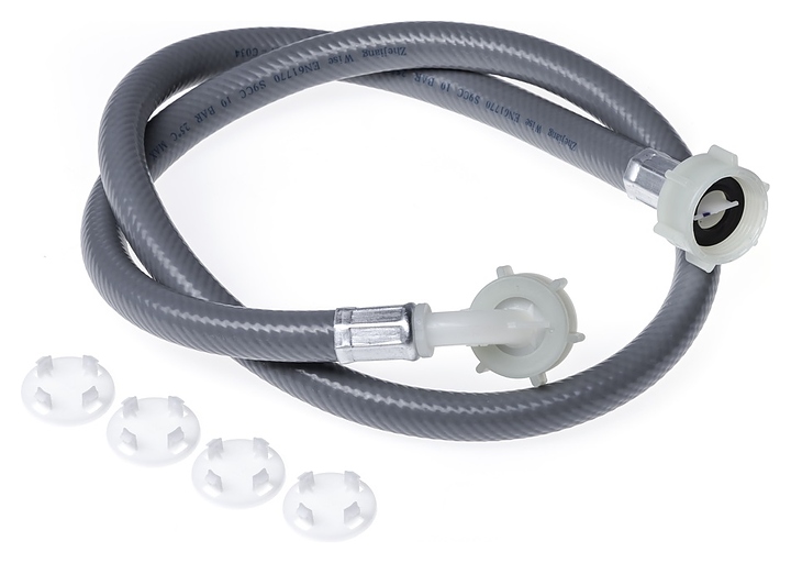 В комплект поставки входят шланг для подачи воды, сливной шланг, транспортировочные болты, набор заглушек, инструкция по эксплуатации, гарантийный талон и заводская упаковка.
