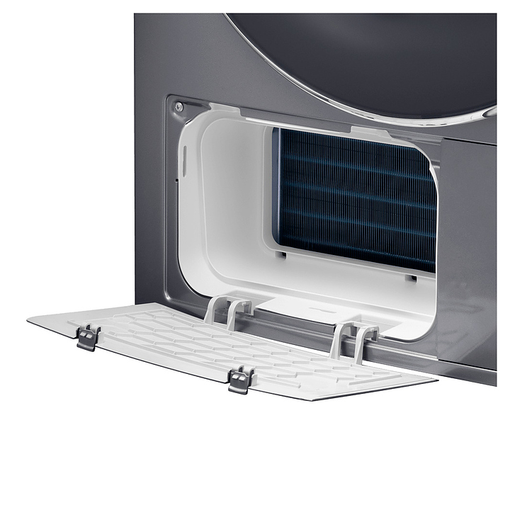 Технология деликатной сушки Heat Pump с эффективным отводом и сбором конденсата в съемный резервуар с помощью теплового насоса и испарителя для возможности установки прибора в местах без вентиляционной и дренажной систем