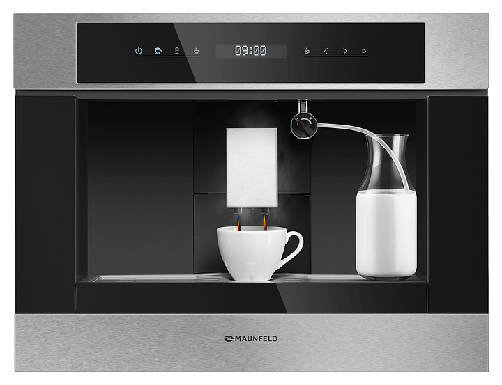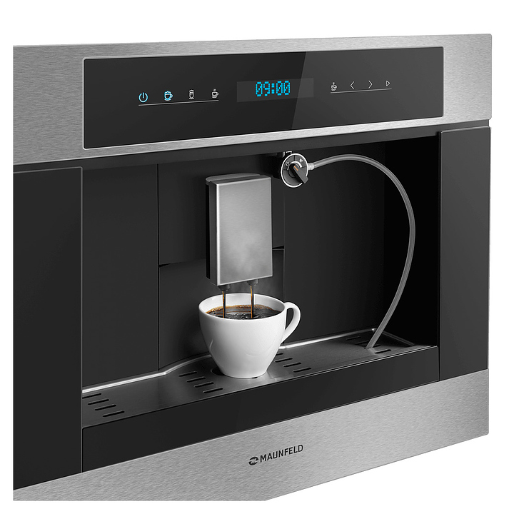 Встраиваемая кофемашина Maunfeld AMCM1503S предназначена для приготовления кофе и напитков на его основе в домашних условиях. Модель оснащена встроенной кофемолкой, высокоэффективным насосом, автоматическим капучинатором, дозатором с 2 соплами, кабелем питания, панелью управления с функциональными сенсорными клавишами и дисплеем с голубой подсветкой индикации. Фронт выполнен из стали с покрытием черного цвета и горизонтальными рамками с сатинированной поверхностью цвета нержавеющей стали, жернова – из нержавеющей стали, панель управления с черной глянцевой поверхеостью.