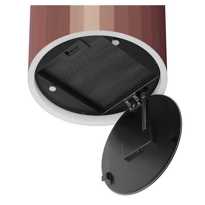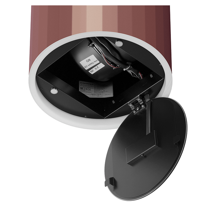 Островная кухонная вытяжка Maunfeld Adelaide 39 Isla предназначена для очистки воздуха от продуктов горения, копоти и запахов в процессе приготовления пищи путем принудительной вентиляции в домашних условиях. Модель оснащена электродвигателем с вентилятором, откидной крышкой фильтра, кабелем питания и круглой периметральной светодиодной лампой. Корпус прибора цилиндрической формы, стилизованный под античную колонну с вертикальной огранкой, выполнен из высококачественной стали с термостойким покрытием покрытием цвета розовое золото, крышка фильтра – из черного стекла, жироулавливающий фильтр – из алюминия, корпус пульта прямоугольной формы – из черного пластика. В комплект поставки входят беспроводной пульт дистанционного управления с кнопочной клавиатурой, набор монтажных креплений, инструкция по эксплуатации, гарантийный талон и заводская упаковка. Особенности: