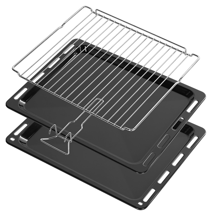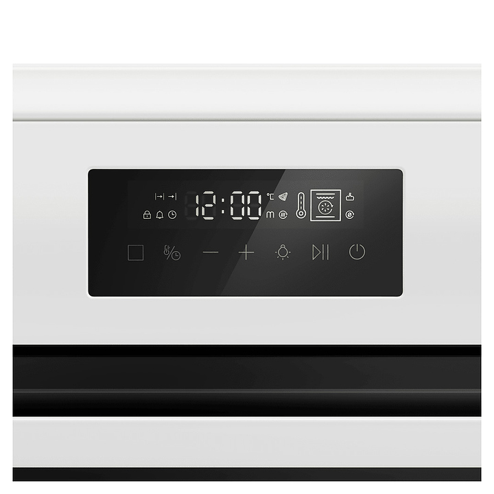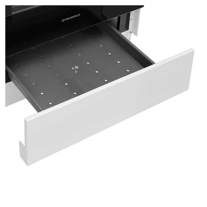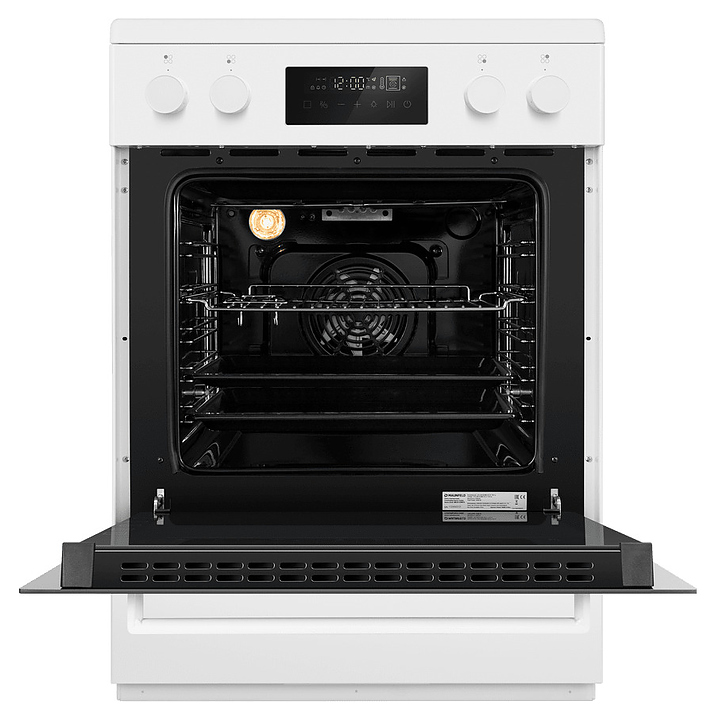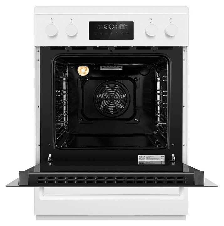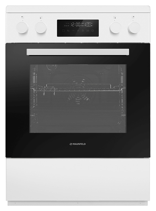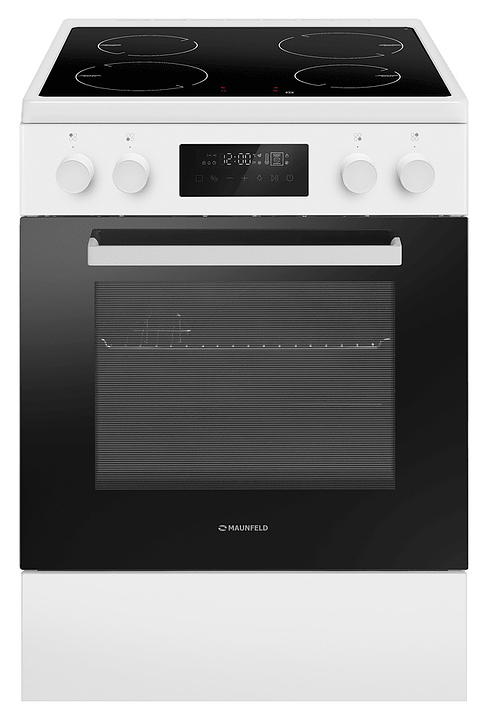 Напольная индукционная плита Maunfeld MIC611W01TDпредназначена для приготовления широкого ассортимента блюд и быстрого разогрева готовых блюд в гостиничных комплексах, офисах и домашних условиях. Модель оснащена рабочей поверхностью с 4 независимыми варочными зонами различной мощности, духовым шкафом с расположенным в задней стенке вентилятором, верхним и нижним нагревательными элементами, верхним грилем, откидной дверью, смотровым окном, горизонтальной рукояткой, 2 боковыми стойками с 5 уровнями направляющих для противней, кабелем питания с вилкой, расположенной в верхней части фронта панелью управления с 4 поворотными переключателями, функциональными сенсорными клавишами и дисплеем с белой подсветкой индикации, а также 4 цифровыми дисплеями с красной подсветкой индикации на варочной поверхности. Корпус выполнен из стали с антикоррозийным покрытием фронта, боковин и тыльной решетки белого цвета, задняя стенка – из оцинкованной стали, дверь с черным покрытием и полным фронтальным остеклением жаропрочным стеклом без винтового крепежа, рабочая поверхность – из высококачественной износостойкой стеклокерамики CERAN черного цвета, противни – из стали с эмалированной поверхностью, боковые стойки, решетка для гриля и прихват – из стали с никелированной и хромированной поверхностью, рукоятка с белой поверхностью.