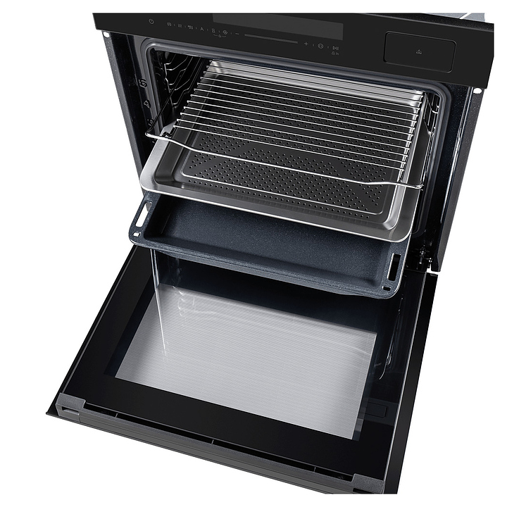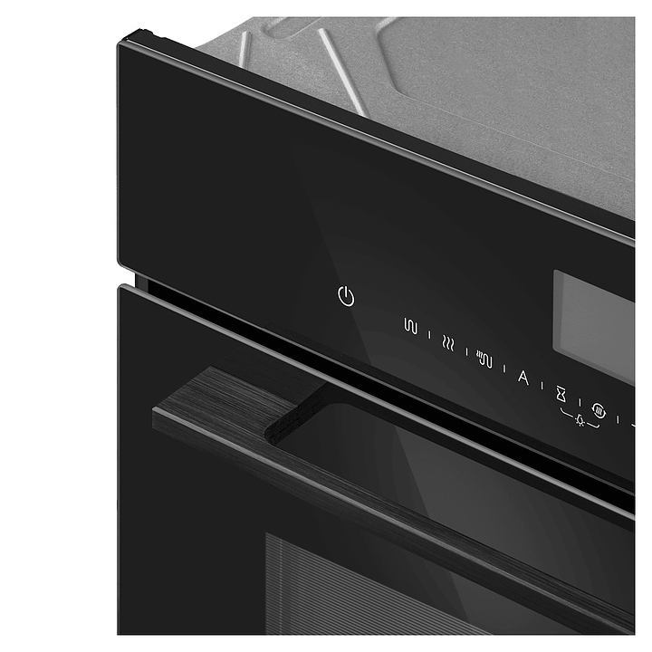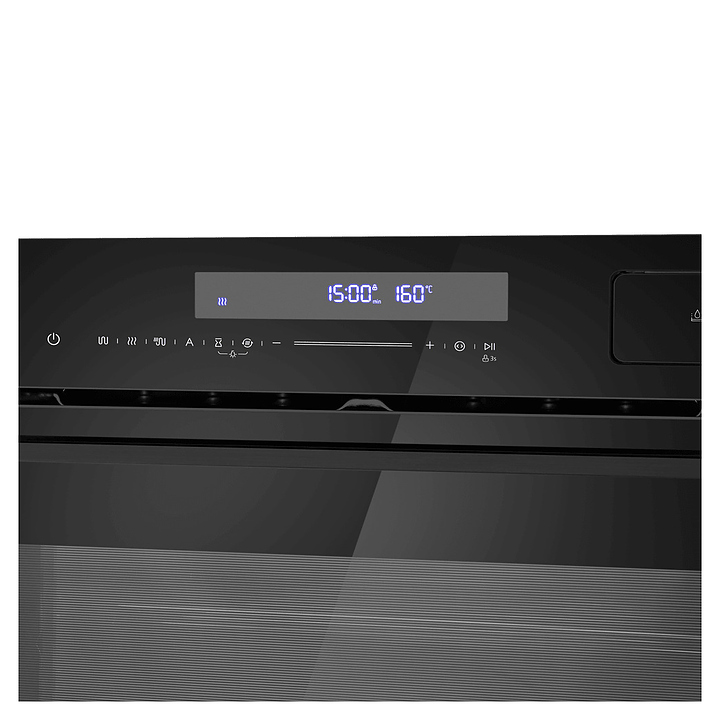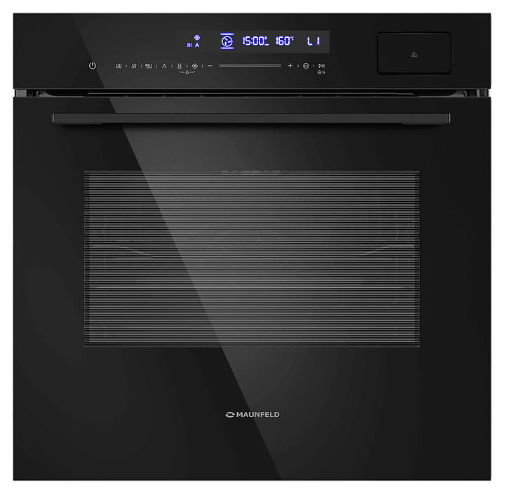 Встраивамый электрический духовой шкаф Maunfeld MEOR7216STFB предназначен для приготовления большого ассортимента блюд в домашних условиях. Модель оснащена камерой с расположенными в задней стенке кольцевым нагревательным элементом и вентилятором, парогенератором, верхним и нижним нагревательными элементами, верхним грилем, 2 боковыми стойками с 5 уровнями направляющих для противней, откидной дверью со смотровым окном, горизонтальной рукояткой, кабелем питания с вилкой, расположенной в верхней части фронта панелью управления с сенсорными функциональными клавишами и информативным светодиодным дисплеем с белой подсветкой индикации. Корпус выполнен из высококачественной стали, фронт с покрытием черного цвета и полным остеклением без винтового крепежа прозрачным стеклом, боковые стойки и решетка для гриля – из стали с хромированной поверхностью, сплошной противень – из стали с эмалированным покрытием, перфорированный противень – из нержавеющей стали, рукоятка – из металла с черной матовой поверхностью.