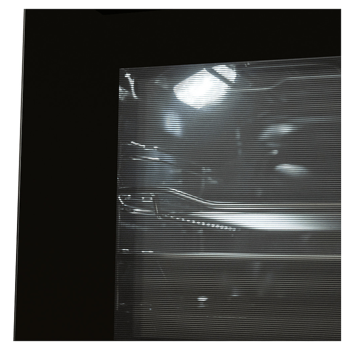 Специальная тонировка внутреннего стекла трамп-линиями для визуального эффекта непрозрачности при выключенном освещении и четкого обзора содержимого при включенном