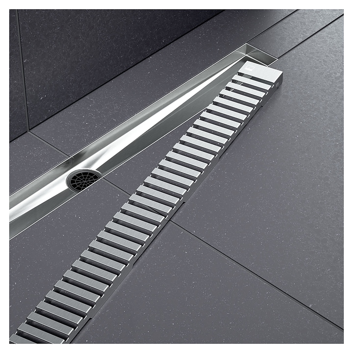 Душевой лоток TIMO Drain System 800 DS230108/00 предназначен для использования в душевых комнатах. Модель изготовлена с минимальным количеством швов, имеет гладкие и ровные края и не требует дополнительной обработки. Благодаря внутренней поверхности с 3-D уклоном вода уходит быстрее и не задерживается на поверхности. Регулируемые опоры гарантируют простую установку в местах со значительными неровностями монтажной поверхности. Водоотводящий желоб выполнен из нержавеющей стали. В комплект поставки входят водоотводящий желоб, декоративная панель "lines", монтажная заглушка, поворотный сифон DN50 с выходом вбок, регулируемые опоры, стакан с мембраной, улавливатель волос и мусора, гидроизоляционная лента и сервисный ключ. Дополнительные характеристики: