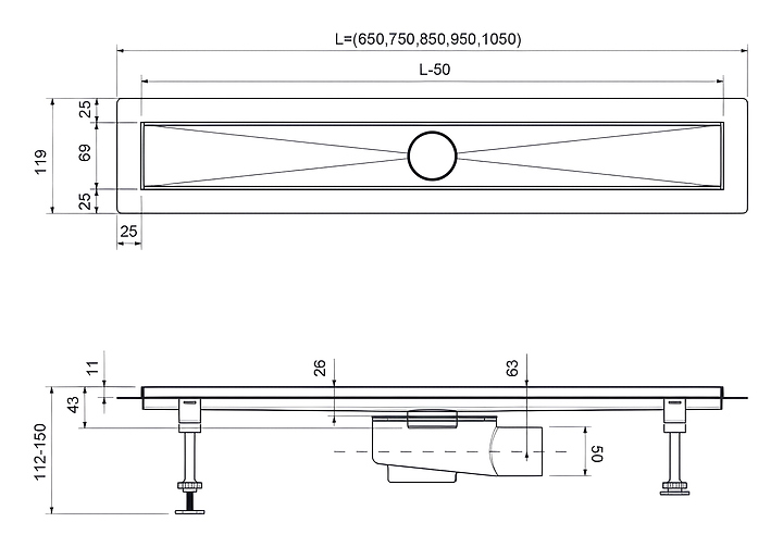 Душевой лоток TIMO Drain System 700 DS230107/00 предназначен для использования в душевых комнатах. Модель изготовлена с минимальным количеством швов, имеет гладкие и ровные края и не требует дополнительной обработки. Благодаря внутренней поверхности с 3-D уклоном вода уходит быстрее и не задерживается на поверхности. Регулируемые опоры гарантируют простую установку в местах со значительными неровностями монтажной поверхности. Водоотводящий желоб выполнен из нержавеющей стали. В комплект поставки входят водоотводящий желоб, декоративная панель "lines", монтажная заглушка, поворотный сифон DN50 с выходом вбок, регулируемые опоры, стакан с мембраной, улавливатель волос и мусора, гидроизоляционная лента и сервисный ключ. Дополнительные характеристики: