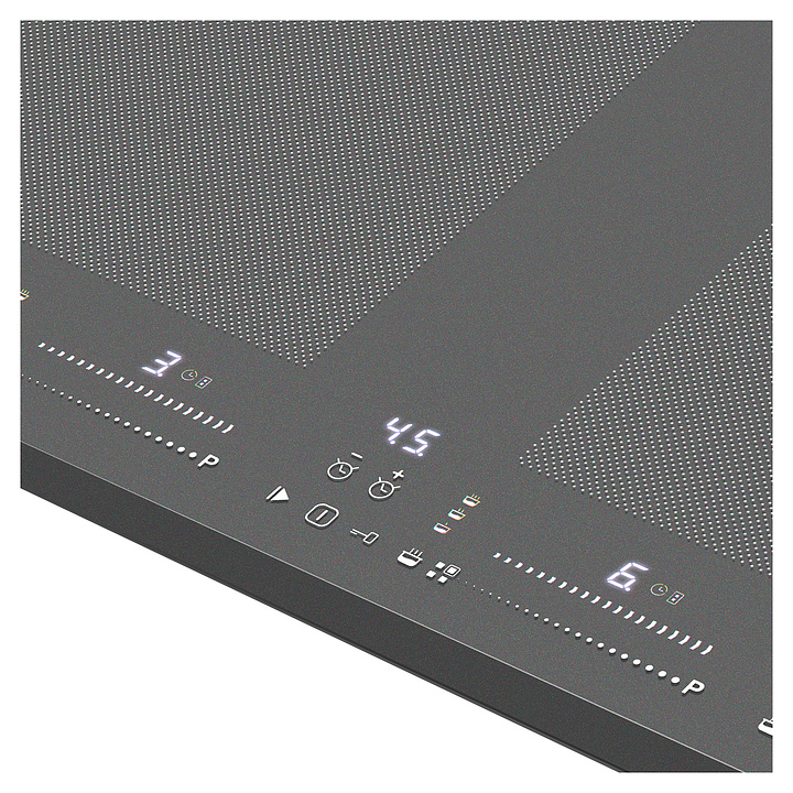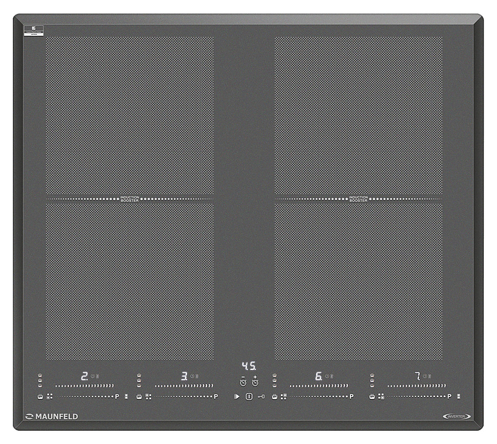 Индукционная варочная панель Maunfeld CVI594SF2DGR Inverter предназначена для приготовления большого ассортимента блюд в домашних условиях. Принцип работы основан на непосредственном нагреве металлической посуды создаваемыми высокочастотным магнитным полем индуцированными вихревыми токами. Модель оснащена 4 варочными зонами, кабелем питания, сенсорной панелью управления и 5 светодиодными цифровыми дисплеями с белой подсветкой индикации. Рабочая поверхность выполнена из высококачественной износостойкой стеклокерамики Nippon (Япония) оттенка графит с фацетированной кромкой.