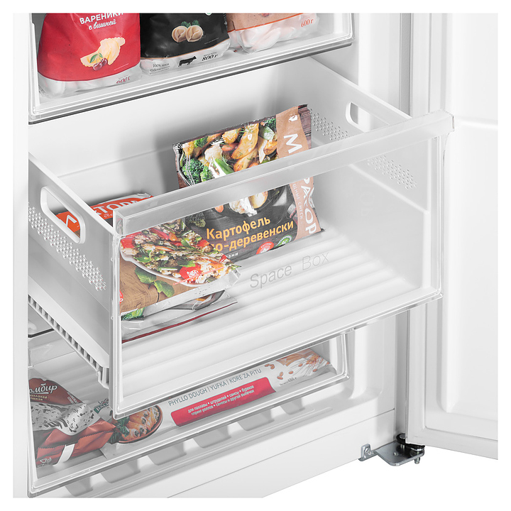 Морозильник-холодильник Maunfeld MFFR185W предназначен для охлаждения, замораживания, кратковременного и длительного хранения пищевых продуктов и напитков в гостиничных комплексах, офисах, а также домашних условиях. Модель оснащена камерой с правосторонней распашной дверью на перенавешиваемых внешних петлях, короткой вертикальной рукояткой, кабелем питания с евровилкой, расположенной в верхней части фронта двери панелью управления с сенсорными функциональными клавишами и светодиодным дислеем с цифровыми и символьными сегментами индикации. Фасад и боковины выполнены из стали с глянцевым эмалированным покрытием белого цвета, внутренняя облицовка камеры – из белого антибактериального пластика легкой очистки, плоские полки – из прозрачного закаленного стекла с белой фронтальной окантовкой, ящики – из белого пластика с прозрачным фронтом, крышки полок – из прозрачного пластика, рукоятка с серебристой матовой поверхностью, панель управления в серебристо-черной цветовой гамме, упаковка – из нетоксичных перерабатываемых материалов. Комплектация: