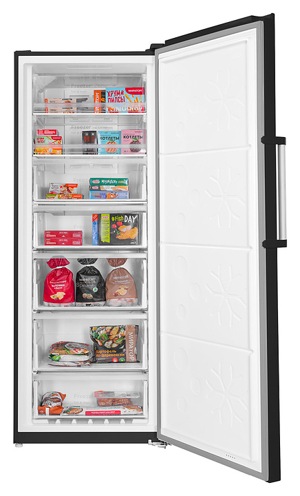 Морозильник-холодильник Maunfeld MFFR185SB предназначен для охлаждения, замораживания, кратковременного и длительного хранения пищевых продуктов и напитков в гостиничных комплексах, офисах, а также домашних условиях. Модель оснащена камерой с правосторонней распашной дверью на перенавешиваемых внешних петлях, короткой вертикальной рукояткой, кабелем питания с евровилкой, расположенной в верхней части фронта двери панелью управления с сенсорными функциональными клавишами и светодиодным дислеем с цифровыми и символьными сегментами индикации. Фасад выполнен из металла с сатинированной поверхностью оттенка черная нержавеющая сталь, боковины – из стали с покрытием черного цвета, внутренняя облицовка камеры – из белого антибактериального пластика легкой очистки, плоские полки – из прозрачного закаленного стекла с белой фронтальной окантовкой, ящики – из белого пластика с прозрачным фронтом, крышки полок – из прозрачного пластика, рукоятка с серебристой матовой поверхностью, панель управления в серебристо-черной цветовой гамме, упаковка – из нетоксичных перерабатываемых материалов. Комплектация: