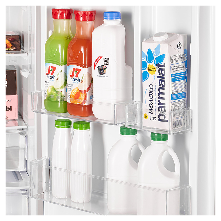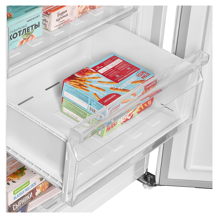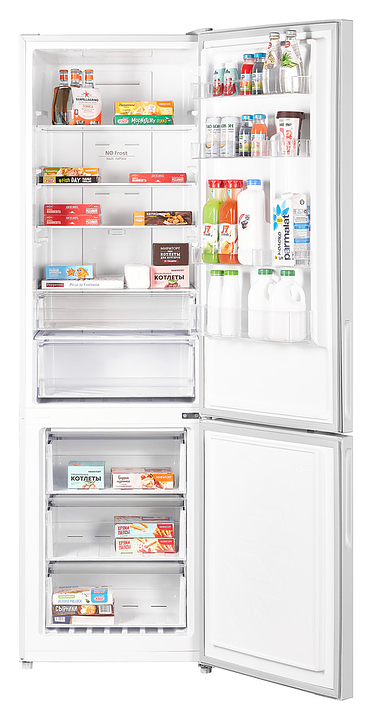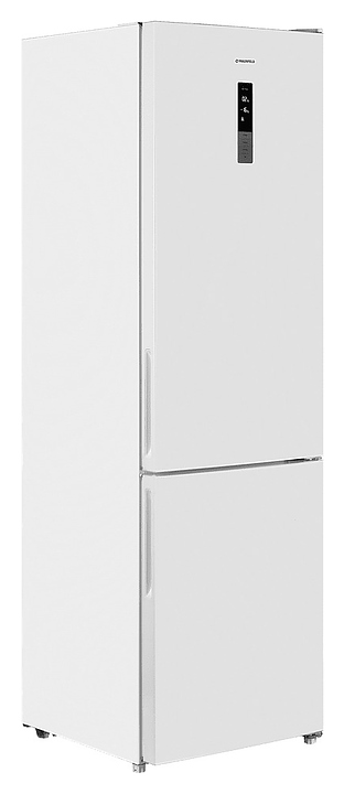 Холодильник Maunfeld MFF200NFW10 Inverter предназначен для охлаждения, замораживания, кратковременного и длительного хранения пищевых продуктов и напитков в гостиничных комплексах, офисах, а также домашних условиях. Модель оснащена холодильной камерой сверху, морозильной камерой снизу, правосторонними распашными дверьми на перенавешиваемых петлях, кабелем питания с евровилкой и расположенной на верхней двери сенсорной панелью управления с 2 цифровыми дисплеями. Фасад выполнен из металла с покрытием белого цвета, боковины – из стали с покрытием в цвет фасада, внутренняя облицовка камер – из белого антибактериального пластика, плоские полки – из прозрачного закаленного стекла, навесные полки – из прозрачного пластика, ящики – из белого пластика с прозрачным фронтом, ящики и полки декорированы окантовками серебристого оттенка, панель управления в серебристо-черной цветовой гамме, упаковка – из гофрокартона, полимерной пленки и полистирола.
