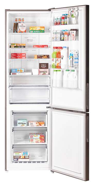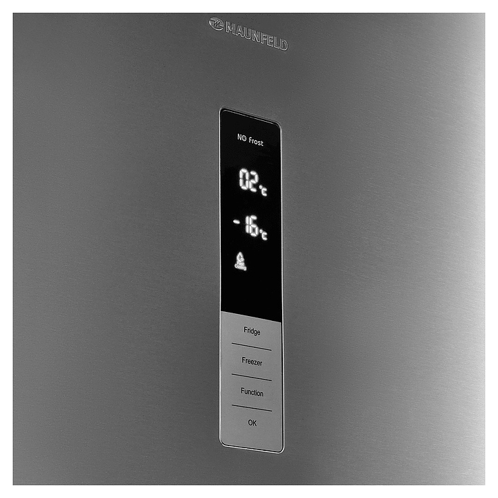 Холодильник Maunfeld MFF200NFХ10 Inverter предназначен для охлаждения, замораживания, кратковременного и длительного хранения пищевых продуктов и напитков в гостиничных комплексах, офисах, а также домашних условиях. Модель оснащена холодильной камерой сверху, морозильной камерой снизу, правосторонними распашными дверьми на перенавешиваемых петлях, кабелем питания с евровилкой и расположенной на верхней двери сенсорной панелью управления с 2 цифровыми дисплеями. Фасад выполнен из металла с сатинированной поверхностью цвета нержавеющая сталь, боковины – из стали с покрытием в цвет фасада, внутренняя облицовка камер – из белого антибактериального пластика, плоские полки – из прозрачного закаленного стекла, навесные полки – из прозрачного пластика, ящики – из белого пластика с прозрачным фронтом, ящики и полки декорированы окантовками серебристого оттенка, панель управления в серебристо-черной цветовой гамме, упаковка – из гофрокартона, полимерной пленки и полистирола.