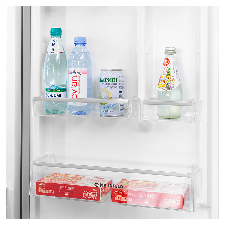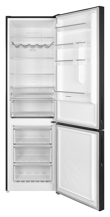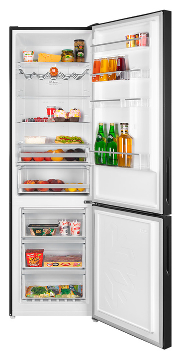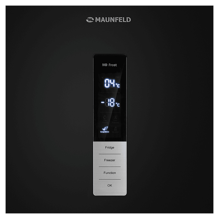 Холодильник Maunfeld MFF200NFBE предназначен для охлаждения, замораживания, кратковременного и длительного хранения пищевых продуктов и напитков в гостиничных комплексах, офисах, а также домашних условиях. Модель оснащена холодильной камерой сверху, морозильной камерой снизу, правосторонними распашными дверьми на перенавешиваемых петлях, кабелем питания с евровилкой и расположенной на верхней двери сенсорной панелью управления с 2 цифровыми дисплеями. Фасад выполнен из стали с покрытием черного цвета, боковины – из стали с покрытием в цвет фасада, внутренняя облицовка камер – из белого антибактериального пластика, плоские полки – из прозрачного закаленного стекла, навесные полки – из прозрачного пластика, ящики – из белого пластика с прозрачным фронтом, ящики и полки декорированы окантовками серебристого оттенка, панель управления в серебристо-черной цветовой гамме, упаковка – из гофрокартона, полимерной пленки и полистирола.