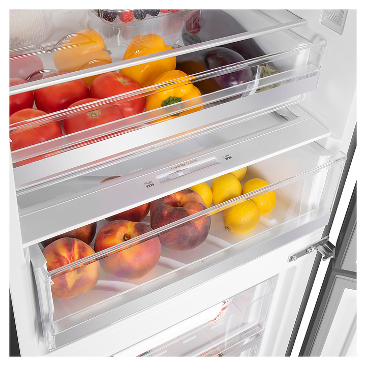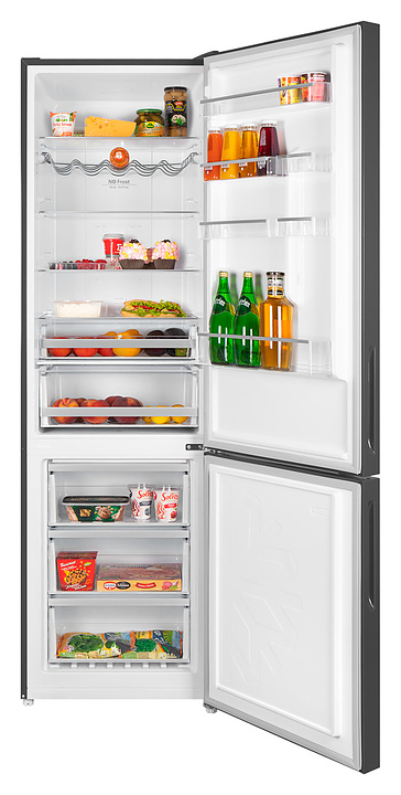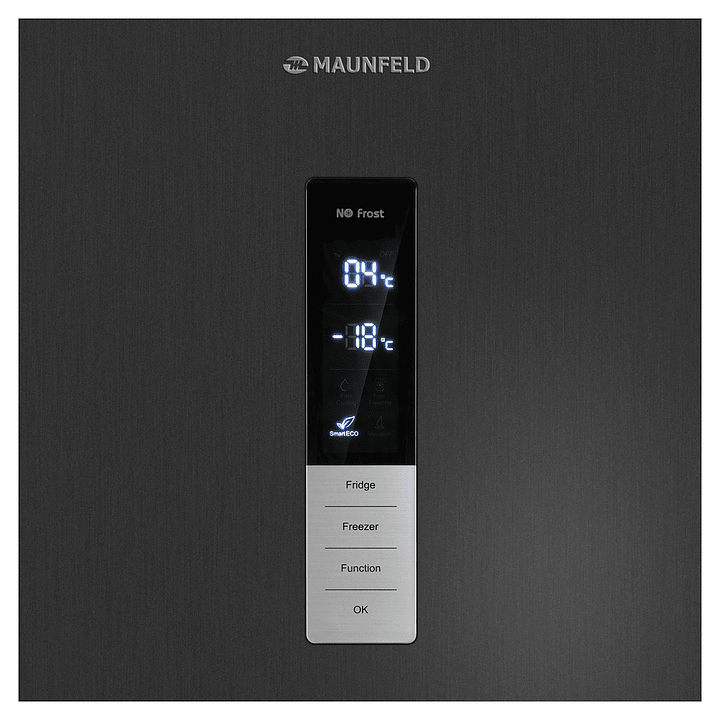 Холодильник Maunfeld MFF200NFSBE предназначен для охлаждения, замораживания, кратковременного и длительного хранения пищевых продуктов и напитков в гостиничных комплексах, офисах, а также домашних условиях. Модель оснащена холодильной камерой сверху, морозильной камерой снизу, правосторонними распашными дверьми на перенавешиваемых петлях, кабелем питания с евровилкой и расположенной на верхней двери сенсорной панелью управления с 2 цифровыми дисплеями. Фасад выполнен из металла с сатинированной поверхностью оттенка черная нержавеющая сталь, боковины – из стали с покрытием в цвет фасада, внутренняя облицовка камер – из белого антибактериального пластика, плоские полки – из прозрачного закаленного стекла, навесные полки – из прозрачного пластика, ящики – из белого пластика с прозрачным фронтом, ящики и полки декорированы окантовками серебристого оттенка, панель управления в серебристо-черной цветовой гамме, упаковка – из гофрокартона, полимерной пленки и полистирола.