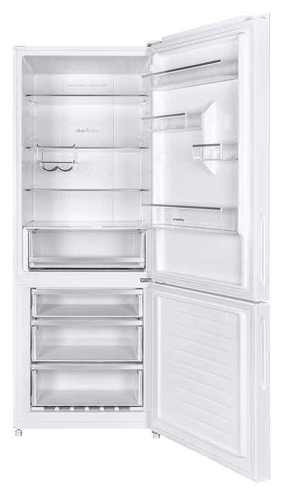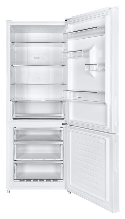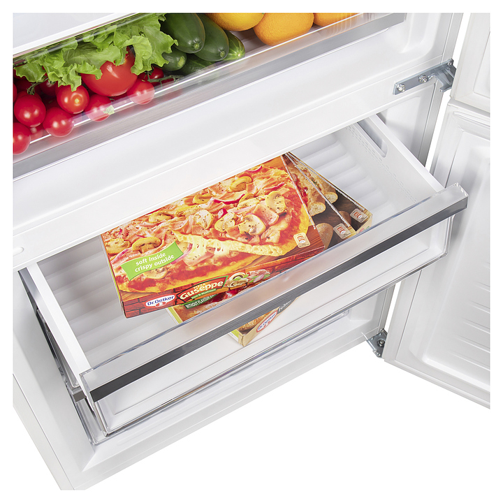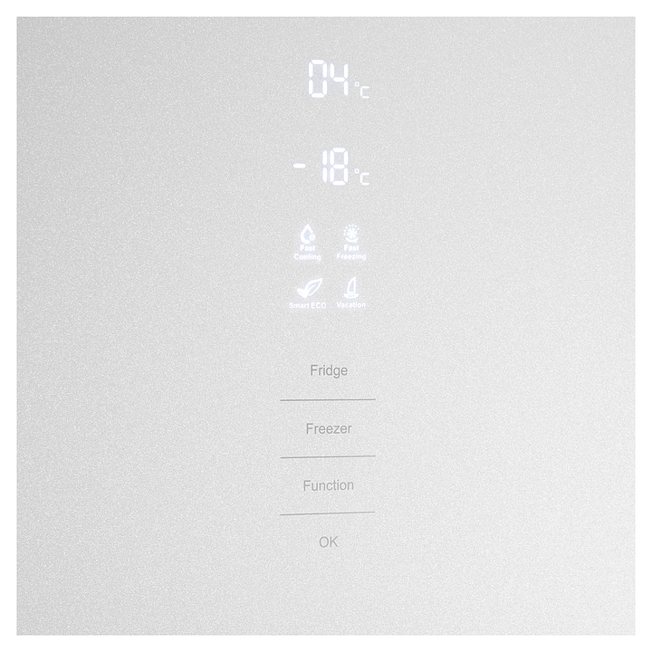 Холодильник Maunfeld MFF1857NFW предназначен для охлаждения, замораживания, кратковременного и длительного хранения пищевых продуктов и напитков в гостиничных комплексах, офисах, а также домашних условиях. Модель оснащена холодильной камерой сверху, морозильной камерой снизу, правосторонними перенавешиваемыми распашными дверьми, кабелем питания с евровилкой и расположенной на верхней двери сенсорной панелью управления с 2 цифровыми дисплеями. Фасад выполнен из стали с покрытием жемчужно белого цвета и полным остеклением без винтового крепежа, боковины – из стали с антикоррозийным покрытием в цвет фасада, внутренняя облицовка камер – из белого антибактериального пластика, плоские полки – из прозрачного безопасного закаленного стекла, навесные полки – из прозрачного пластика, ящики – из белого пластика с прозрачным фронтом, полки и ящики декорированы металлической окантовкой серебристого оттенка, упаковка – из гофрокартона, полимерной пленки и полистирола.