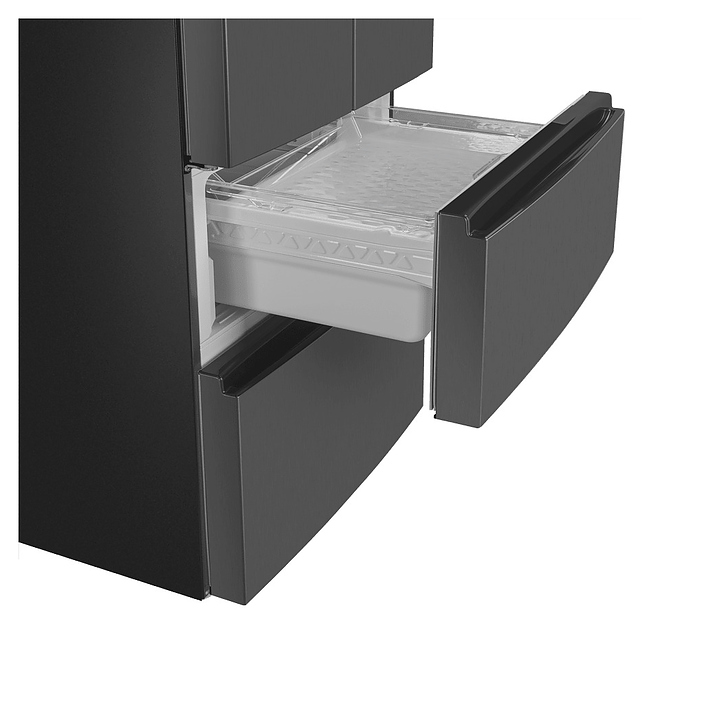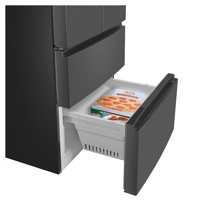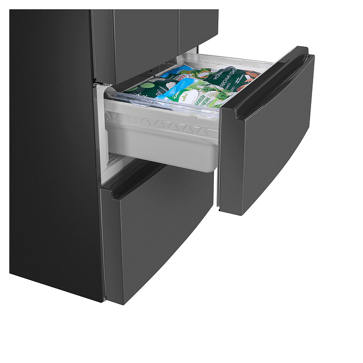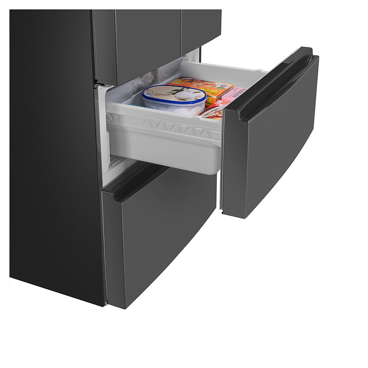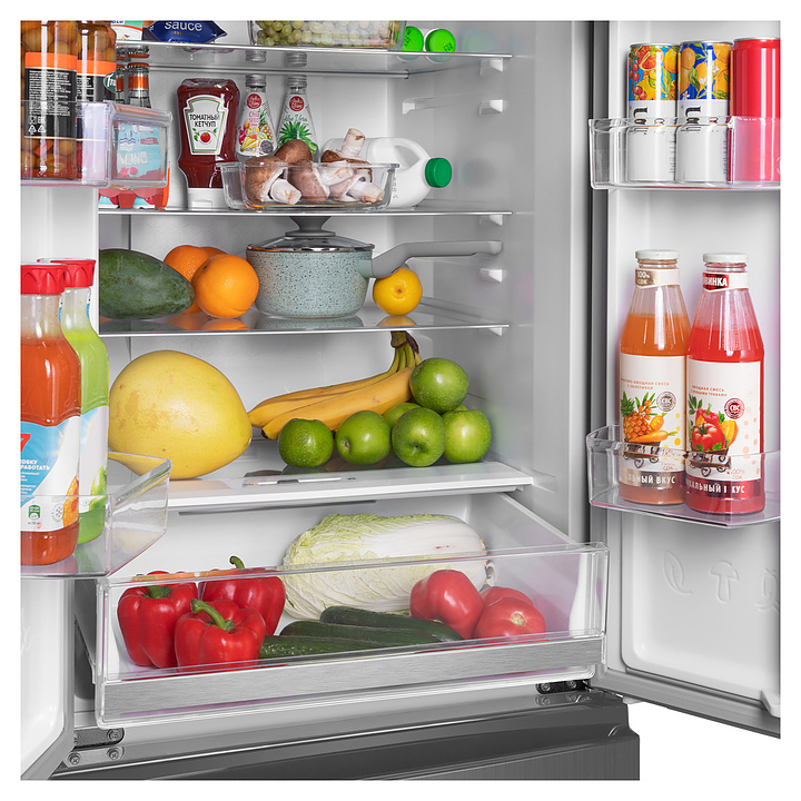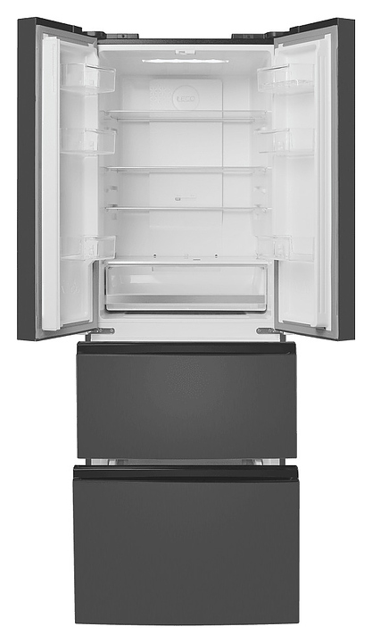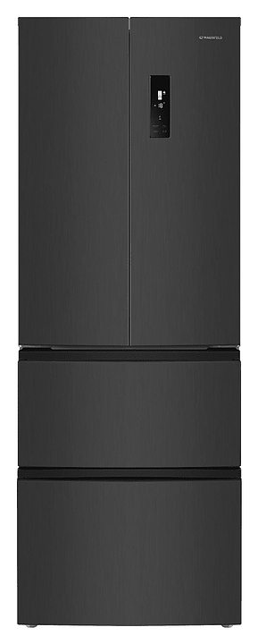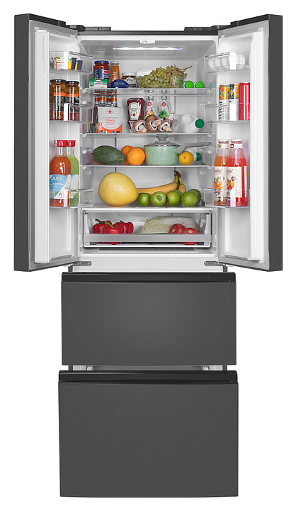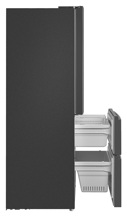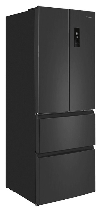 Холодильник Maunfeld MFF180NFSBE01 предназначен для охлаждения, замораживания, кратковременного и длительного хранения пищевых продуктов и напитков в гостиничных комплексах, офисах, а также домашних условиях. Модель состоит из холодильной камеры сверху с 2 распашными дверьми и морозильной камеры снизу с выдвижными ящиками типа French Door, оснащена кабелем питания с евровилкой и расположенной на правой верхней двери панелью управления с сенсорными функциональными клавишами и жидкокристаллическим дисплеем с белой подсветкой индикации. Фасад выполнен из металла с сатинированной поверхностью оттенка черная нержавеющая сталь, боковины – из стали с антикоррозийным покрытием в цвет фасада, внутренняя облицовка камер – из белого антибактериального пластика легкой очистки, плоские полки – из прозрачного закаленного стекла, ящик Crisper Box и навесные полки – из прозрачного пластика, ящик и полки декорированы металлическими окантовками серебристого оттенка, упаковка – из гофрокартона, полимерной пленки и полистирола.