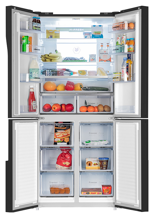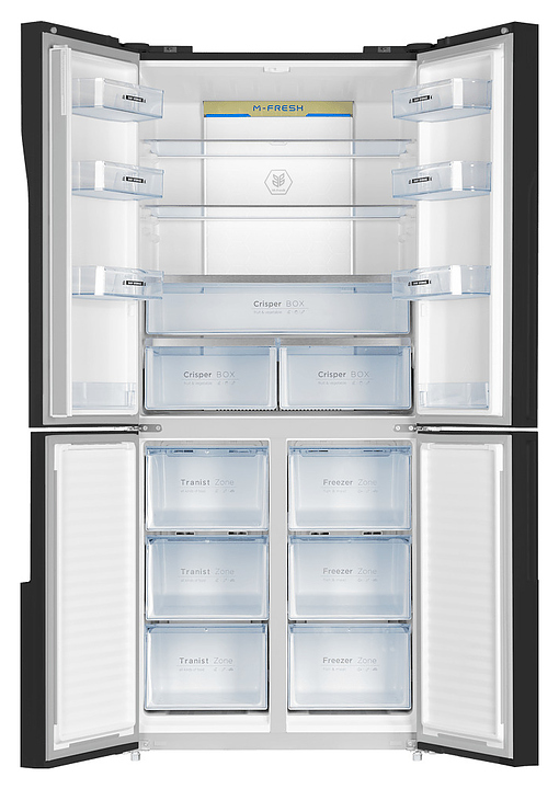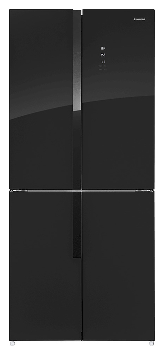 Холодильник Maunfeld MFF181NFB типа Side-by-Side предназначен для охлаждения, замораживания, кратковременного и длительного хранения пищевых продуктов и напитков в гостиничных комплексах, офисах, а также домашних условиях. Модель состоит из холодильной камеры сверху и морозильной камеры с 2 изолированными отсеками снизу, оснащена 4 распашными дверьми, кабелем питания с евровилкой и расположенной на правой верхней двери панелью управления с сенсорными функциональными клавишами, светодиодными сигнальльными лампами и цифровым дисплееем индикации. Фасад выполнен из металла с покрытием черного цвета и полным остеклением без винтового крепежа, боковины – из стали с антикоррозийным покрытием в цвет фасада, внутренняя облицовка камер – из белого пластика, плоские полки – из прозрачного безопасного закаленного стекла, навесные полки – из прозрачного пластика, ящики – из белого пластика с прозрачным фронтом, ящики и плоские полки декорированы металлическими окантовками серебристого оттенка, упаковка – из гофрокартона, полимерной пленки и полистирола.