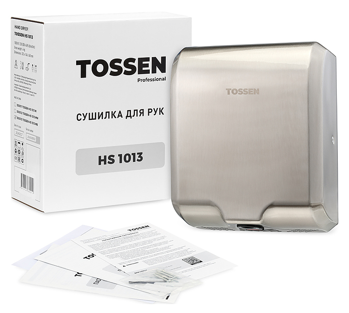 Высокоскоростная сушилка для рук TOSSEN HS 1013 M коллекции Steel line используется в гостиницах, отелях, бассейнах, фитнес-клубах и спа-центрах с высокой проходимостью. Модель оснащена HEPA-фильтром, обеспечивающим чистоту подаваемого воздуха и надежно защищающим двигатель от пыли, ультрафиолетовым обеззараживателем подаваемого воздуха и сенсорным включением. Ультратонкий корпус выполнен из высококачественной нержавеющей стали со специальным покрытием, которое препятствует появлению на корпусе следов от пальцев, обеспечивает долговечность, безупречный внешний вид и облегчает уход за поверхностью сушилки. Особенности: