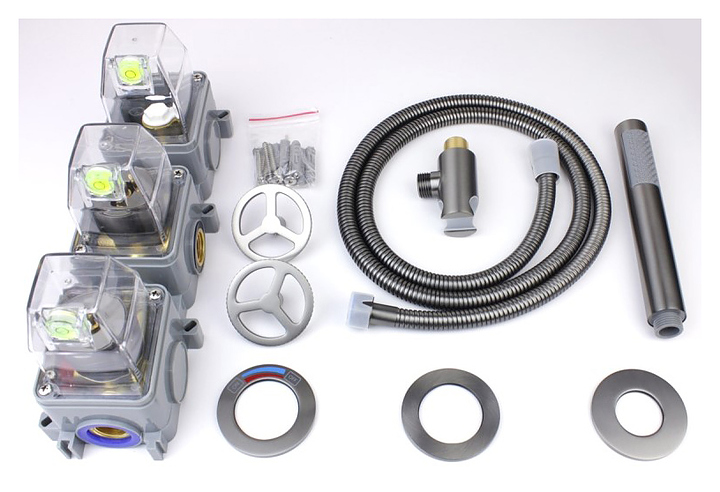 Душевой комплект Bronze de Lux Liberty 5011GG-P используется в ванных комнатах. Модель оснащена вентильным управлением, круглым верхним душем и цилиндрической ручной лейкой. Керамический картридж обеспечивает контроль и точность при выборе напора и температуры воды. Изделие выполнено из высококачественной латуни, которая отличается прочностью, долговечностью и устойчивостью к перепадам температур, шланг - из металла. В комплект поставки входят смеситель, внутренняя часть, верхний душ, шланговое подключение с держателем лейки, душевая лейка и шланг. Особенности: