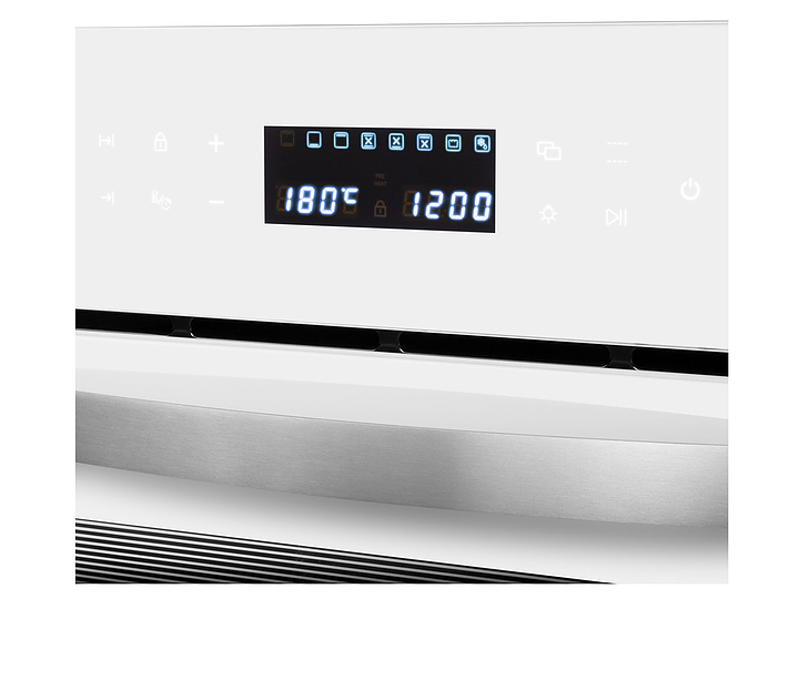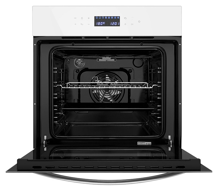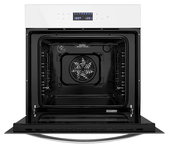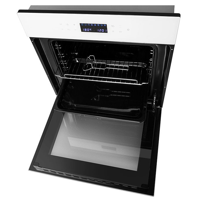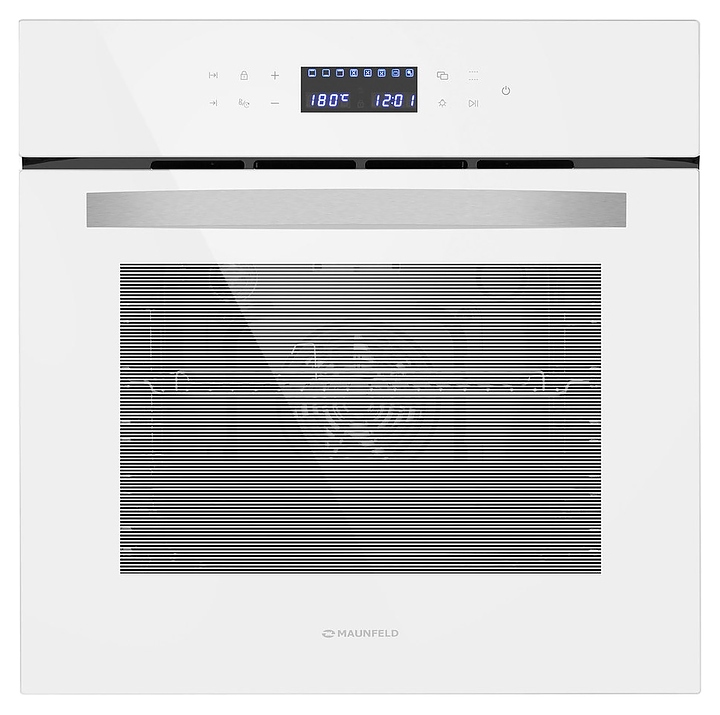 Встраивамый электрический духовой шкаф Maunfeld EOEC.566TW предназначен для приготовления большого ассортимента блюд в домашних условиях. Модель оснащена камерой с расположенным в задней стенке вентилятором, верхним и нижним нагревательными элементами, верхним грилем, 2 боковыми стойками с 5 уровнями направляющих для противней, откидной дверью со смотровым окном, уплощенной дугообразной горизонтальной рукояткой, кабелем питания с вилкой, расположенной в верхней части фронта панелью управления с сенсорными функциональными клавишами и информативным дисплеем с белой подсветкой индикации. Корпус выполнен из высококачественной стали, фронт с покрытием белого цвета и полным остеклением без винтового крепежа прозрачным закаленным стеклом, боковые стойки, решетка для гриля и прихват – из металла с хромированной поверхностью, противень – из стали с эмалированным покрытием, рукоятка – из металла с сатинированной поверхностью цвета нержавеющей стали.