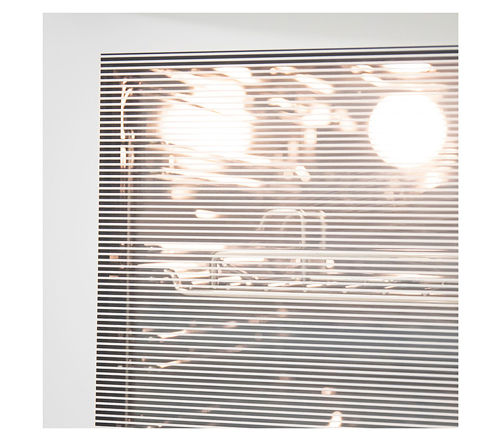 Специальная тонировка внутреннего стекла трамп-линиями для визуального эффекта непрозрачности при выключенном освещении и четкого обзора содержимого при включенном