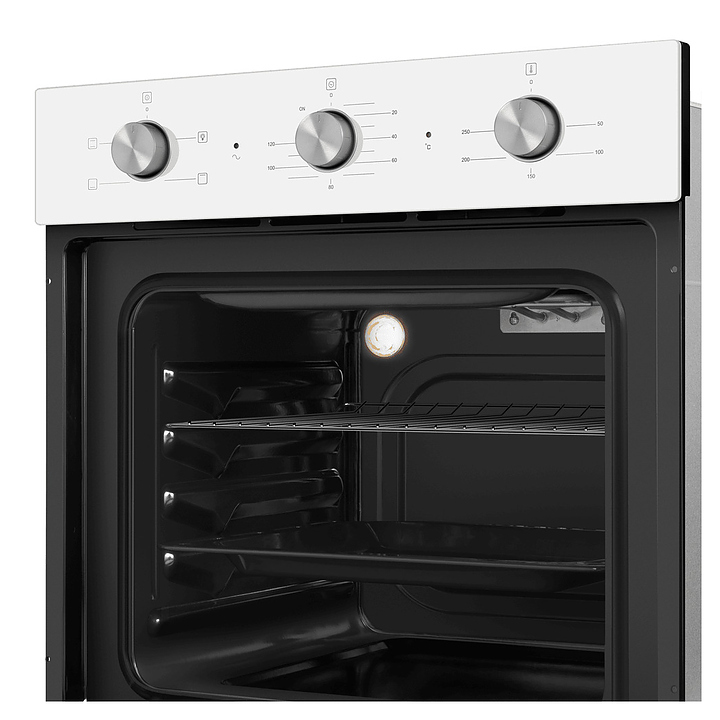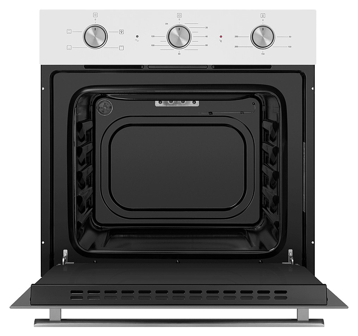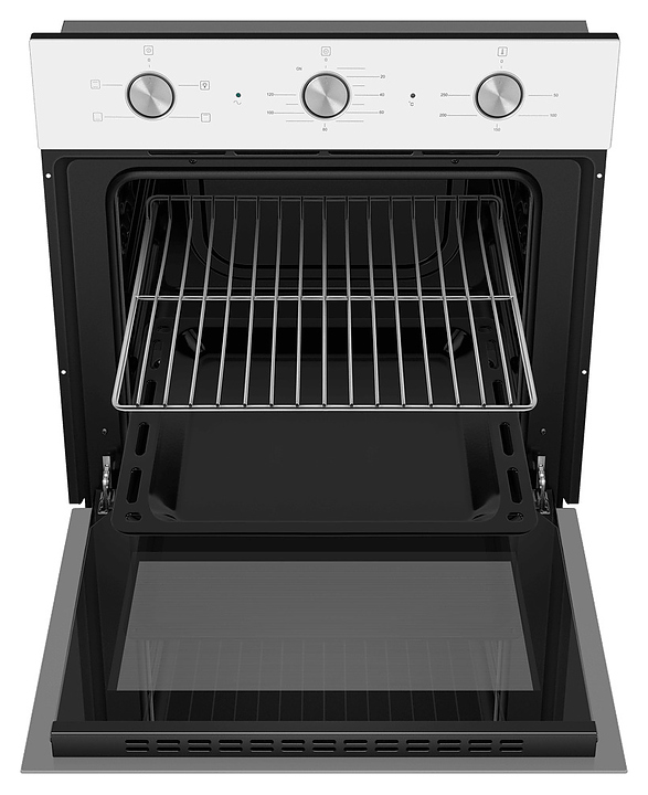 Встраивамый электрический духовой шкаф Maunfeld AEOC6040W предназначен для приготовления большого ассортимента блюд в домашних условиях. Модель оснащена камерой с верхним и нижним нагревательными элементами, 5 уровнями интегрированных в боковые стенки направляющих для противней, откидной дверью со смотровым окном, уплощенной горизонтальной рукояткой, кабелем питания с евровилкой, расположенной в верхней части фронта панелью управления с 3 поворотными цилиндрическими переключателями. Корпус выполнен из высококачественной стали с покрытием фронта белого цвета и полным остеклением фронтальных панелей без винтового крепежа прозрачным закаленным стеклом, решетка для гриля – из стали с хромированной поверхностью, противень – из стали с эмалированным покрытием, фурнитура – из металла с матовой поверхностью цвета нержавеющей стали. Комплектация: