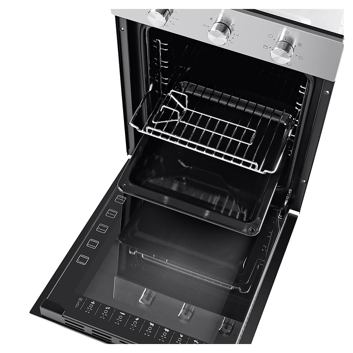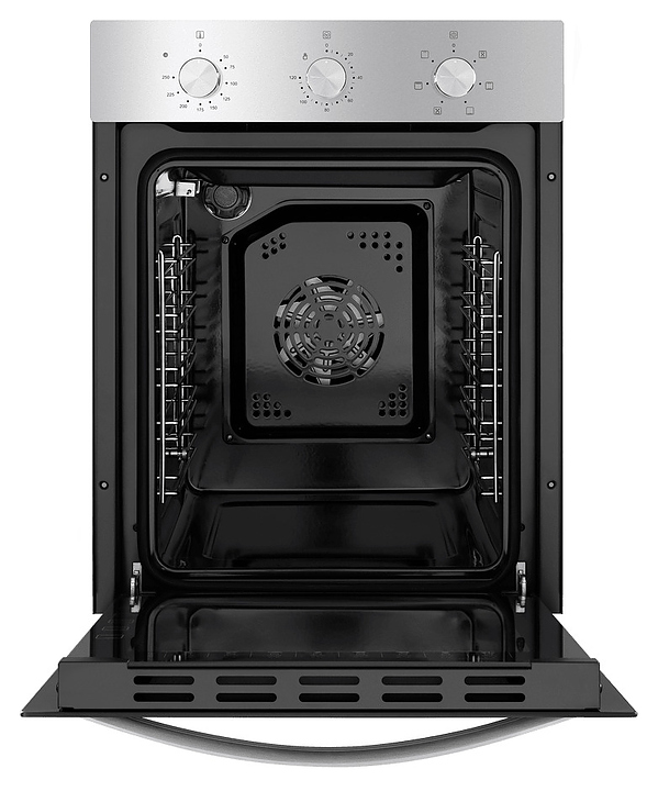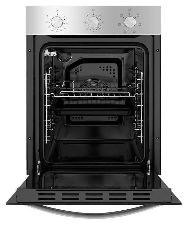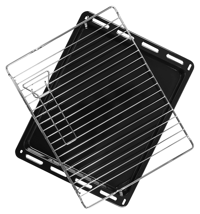 Встраивамый электрический духовой шкаф Maunfeld EOEC516S предназначен для приготовления большого ассортимента блюд в домашних условиях. Модель оснащена камерой с расположенным в задней стенке вентилятором, верхним и нижним нагревательными элементами, верхним грилем, боковыми стойуами с 5 уровнями направляющих для противней, откидной дверью со смотровым окном, уплощенной дугообразной горизонтальной рукояткой, кабелем питания с евровилкой, расположенной в верхней части фронта панелью управления с 3 поворотными цилиндрическими переключателями. Корпус выполнен из высококачественной стали, фронт двери с покрытием черного цвета и полным остеклением прозрачным закаленным стеклом, боковые стойки, решетка для гриля и прихват для противней – из металла с хромированной поверхностью, противень – из стали с эмалированным покрытием, верхняя фронтальная панель, рукоятка и переключатели – из металла с матовой поверхностью цвета нержавеющей стали. Комплектация: