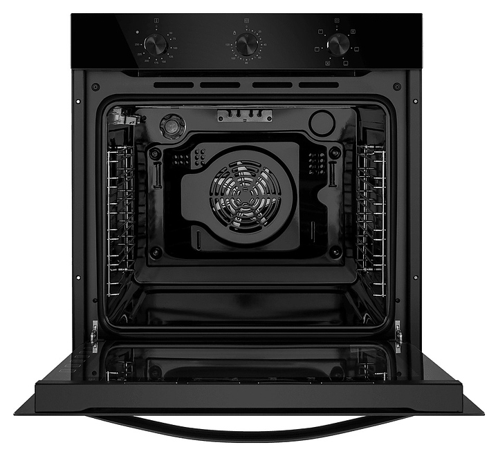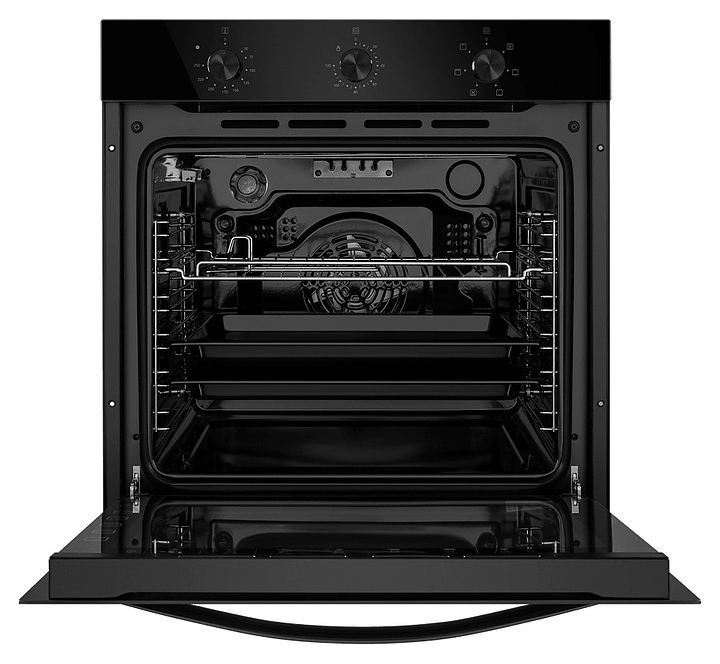 Встраивамый электрический духовой шкаф Maunfeld EOEF.766B2 предназначен для приготовления большого ассортимента блюд в домашних условиях. Модель оснащена камерой с расположенным в задней стенке вентилятором, верхним и нижним нагревательными элементами, верхним грилем, боковыми стойками с 5 уровнями направляющих для противней, откидной дверью со смотровым окном, уплощенной дугообразной горизонтальной рукояткой, кабелем питания с евровилкой, расположенной в верхней части фронта панелью управления с 3 поворотными цилиндрическими переключателями. Корпус выполнен из высококачественной стали с покрытием фронта черного цвета и полным остеклением фронтальных панелей без винтового крепежа прозрачным закаленным стеклом с дымчатой тонировкой, боковые стойки, решетка для гриля и прихват для противней – из металла с хромированной поверхностью, противни – из стали с эмалированным покрытием, рукоятка и переключатели – из металла с черной матовой поверхностью. Комплектация: