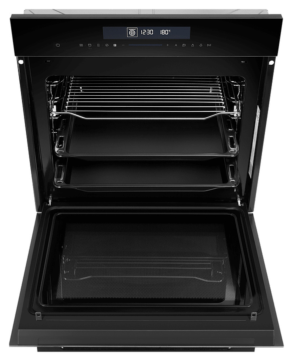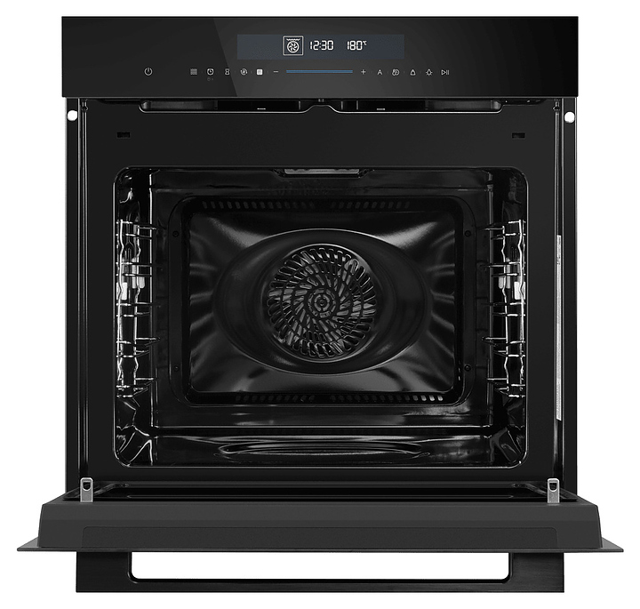 Встраивамый электрический духовой шкаф Maunfeld MEOR7217SMFB предназначен для приготовления большого ассортимента блюд в домашних условиях. Модель оснащена камерой с расположенными в задней стенке кольцевым нагревательным элементом и вентилятором, магнетроном, верхним и нижним нагревательными элементами, верхним грилем, 2 боковыми стойками с 5 уровнями направляющих для противней, откидной дверью со смотровым окном, горизонтальной рукояткой, кабелем питания с вилкой, расположенной в верхней части фронта панелью управления с сенсорными функциональными клавишами и информативным светодиодным дисплеем с белой подсветкой индикации. Корпус выполнен из высококачественной стали, фронт с покрытием черного цвета и полным остеклением без винтового крепежа, боковые стойки и решетка для гриля – из стали с хромированной поверхностью, противни – из стали с эмалированным покрытием, рукоятка – из металла с черной матовой поверхностью.