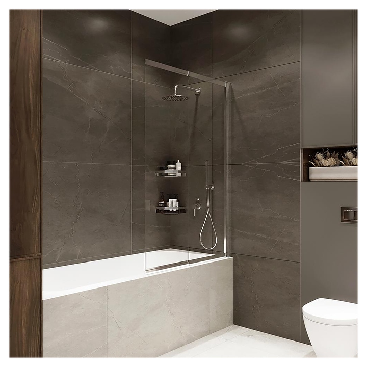 Шторка на ванну Terminus Ното 1CS150х90C 98х145 см, раздвижная (поворотная), профиль хром