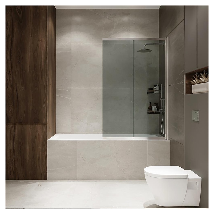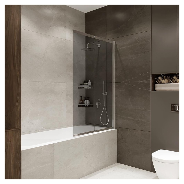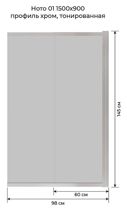 Шторка на ванну Terminus Ното 1CS150х90CT 98х145 см, раздвижная (поворотная), тонированное, профиль хром