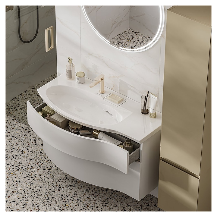Внимание! На фото модель с раковиной и смесителем, которые в комплект поставки не входят и приобретаются отдельно. Внимание! Информация о товарах, размещенная на сайте, не является публичной офертой, определяемой положениями Части 2 Статьи 437 Гражданского кодекса Российской Федерации. Производители вправе вносить изменения в технические характеристики, внешний вид и комплектацию товаров без предварительного уведомления. Уточняйте характеристики у наших менеджеров перед оформлением заказа. |
