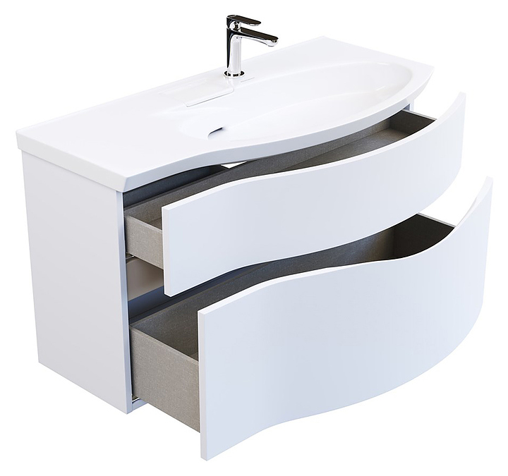 Правосторонняя тумба под раковину Kerama Marazzi Riva RV.100Rh\WHT.M выполнена в современном стиле и идеально впишется в интерьер любой ванной комнаты. Благодаря подвесной конструкции модель не занимает много места и облегчает уборку. Тумба оснащена 2 выдвижными ящиками и врезной ручкой. Фасад выполнен из фанеры. Раковина и смеситель в комплект поставки не входят. Тумба используется с раковиной Riva RV.wb.100Rh. Дополнительные характеристики: