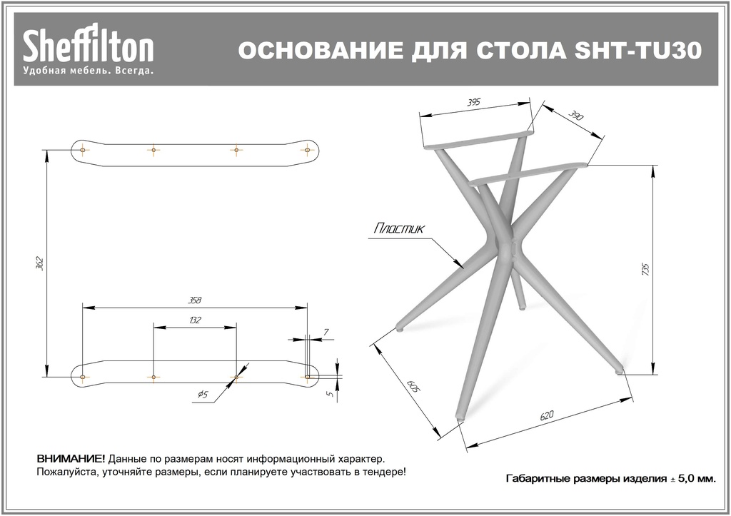 • Форма устанавливаемой столешницы: круглая или квадратная