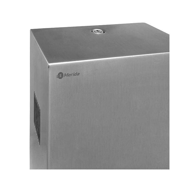 Сушилка Merida STELLA R используется в санитарных узлах торговых центров, гостиниц, аэропортов, предприятий общественного питания и других местах массового пребывания для бесконтактной гигиеничной сушки рук. Модель оснащена кабелем питания. Вертикально ориентированный корпус прямоугольного сечения выполнен из металла с матовой серебристой поверхностью, упаковка – из гофрокартона. Особенности: