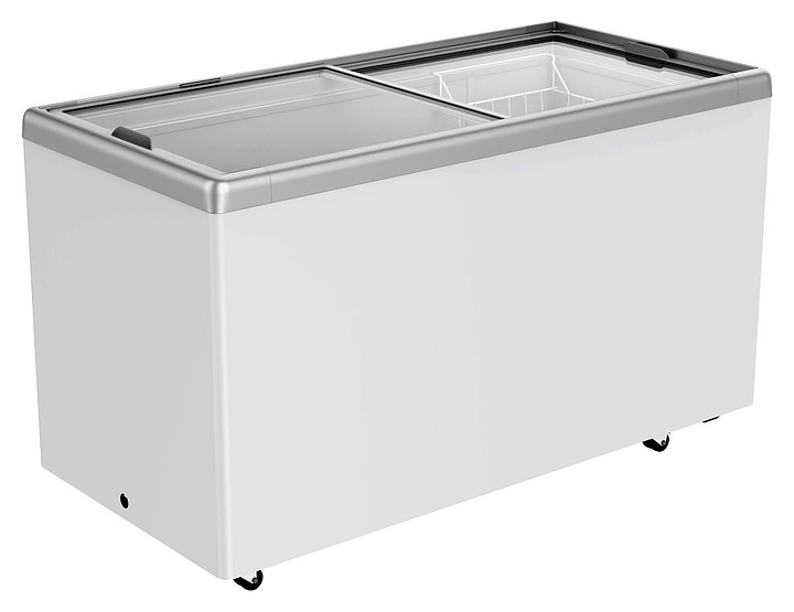 Морозильный ларь Aucma SD-500 предназначен для охлаждения, заморозки, кратковременного и длительного хранения пищевых продуктов таких как мясо, овощи, полуфабрикаты и мороженое на малых предприятиях общественного питания и торговли, гостиничных комплексах, офисах и домашних условиях. Модель оснащена горизонтально ориентированной рабочей камерой с раздвижными дверьми сверху с небольшими уплощенными рукоятками, кабелем питания с евровилкой и расположенной в нижней части боковой стенки электромеханической панелью управления. Корпус выполнен из металла с антикоррозийным покрытием белого цвета, верхняя окантовка корпуса – из формованного АБС пластика с серебристой поверхностью, внутренние стенки камеры – из пластифицированного металла с белой поверхностью, крышки – из безопасного закаленного стекла в пластиковой раме, корзины – из металла с полимерным покрытием. В комплект поставки входят 4 съемные решетчатые корзины и скребок для льда. Особенности: