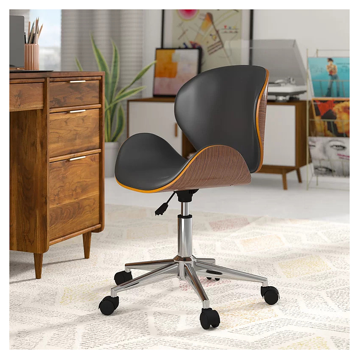Компьютерный стул Hesby Whispered Synchrony используется для комфортного размещения пользователя компьютера в кабинетах и офисах различных учреждений, а также в домашних условиях. Модель оснащена мягким сиденьем и спинкой с изогнутыми боковыми бортами, опорой с устойчивым пятилучьем и рычагом регулировки. Каркасы спинки и сиденья выполнены из фанеры с поверхностью под древесину в коричневых тонах, обивка – из полимера под кожу с матовой черной поверхностью, опора и пятилучье – из хромированного металла, наполнитель обивки – из пенополиуретана. Особенности: