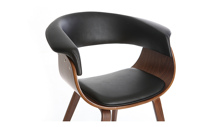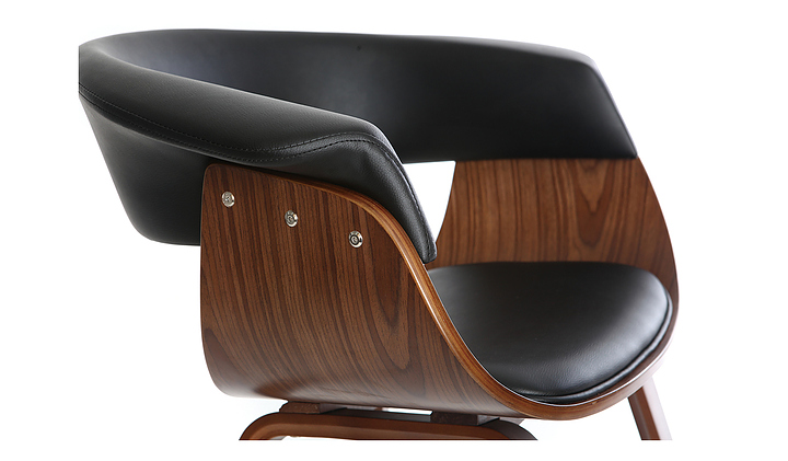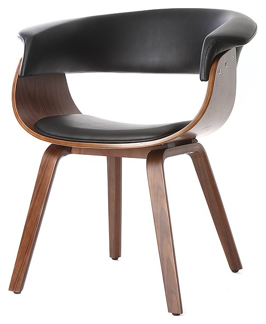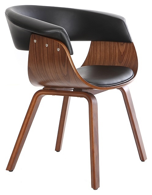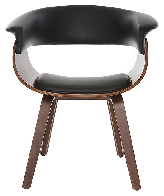Стул Hesby Synchrony используется для оформления интерьера на предприятиях общественного питания, в офисах и кабинетах различных учреждений, а также в домашних условиях. Модель оснащена мягким сиденьем и изогнутой спинкой с интегрированными подлокотниками и устойчивыми уплощенными опорами. Опоры, каркасы спинки и сиденья выполнены из фанеры с поверхностью под древесину в коричневых тонах, обивка – из полимера под кожу с матовой черной поверхностью, наполнитель обивки – из пенополиуретана. Особенности: