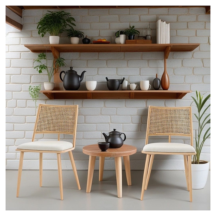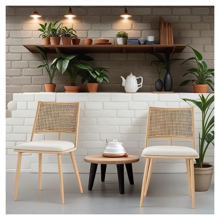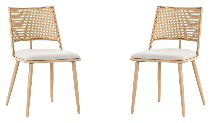 Набор стульев Hesby Unity Echo используется для оформления интерьера на предприятиях общественного питания, в кабинетах различных учреждений и домашних условиях. Набор состоит из 2 стульев. Каждый стул оснащен 4 устойчивыми нисходящими опорами круглого сечения, мягким сиденьем и изогнутой спинкой трапецевидной формы. Каркас выполнен из металла и фанеры с поверхностью оттенка светлое дерево, обивка – из ткани молочного оттенка, вставка на спинке с декоративным плетением из искусственного ротанга бежевого оттенка, наполнитель обивки – из эластичного пенополиуретана. В комплект поставки входят 6-гранный ключ, крепеж и инструкция по сборке. Особенности:
