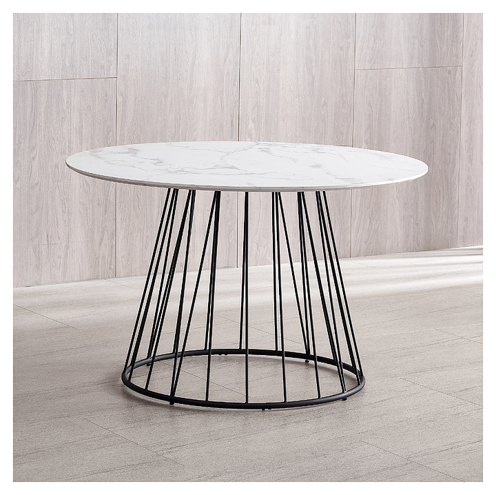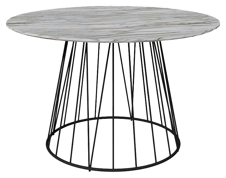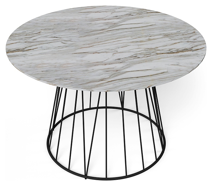 Обеденный стол Hesby Evoke Enchantment используется для оформления интерьера на предприятиях общественного питания и в домашних условиях. Модель оснащена круглой столешницей и устойчивым подстольем в форме усеченного конуса с решетчатыми стенками. Столешница выполнена из ламинированной древесноволокнистой плиты средней плотности (ЛМДФ) с влагостойкой матовой поверхностью под белый мрамор, подстолье – из металлического профиля круглого сечения с покрытием черного цвета. В комплект поставки входят 6-гранный ключ, крепеж и инструкция по сборке. Особенности: