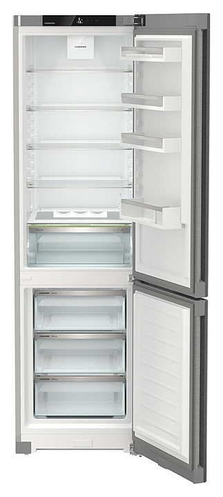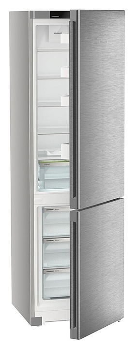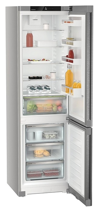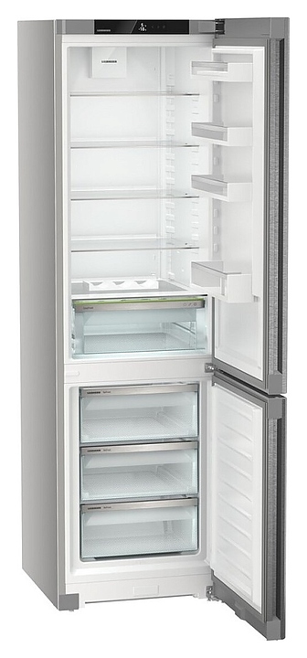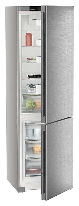 Холодильник Liebherr CNsdc 5703 серии Pure предназначен для охлаждения, замораживания, кратковременного и длительного хранения пищевых продуктов и напитков в гостиничных комплексах, офисах, а также домашних условиях. Модель оснащена холодильной камерой сверху и морозильной камерой снизу, правосторонними перенавешиваемыми распашными дверьми, кабелем питания с евровилкой, расположенными за дверью холодильной камеры в верхней части фронта сенсорной панелью управления и монохромным жидкокристаллическим дисплеем с белой подсветкой индикации. Фасад дверей выполнен из нержавеющей стали с горизонтальной шлифовкой и шелковистой текстурой поверхности SmartSteel серебристого оттенка, боковины – из стали с покрытием в тон фасада, внутренняя облицовка камер – из белого пластика, плоские полки – из прозрачного закаленного стекла, навесные полки и ящики – из белого пластика с прозрачным фронтом, ящики и полки декорированы окантовками серебристого оттенка, упаковка – из гофрокартона, полимерной пленки и полистирола.