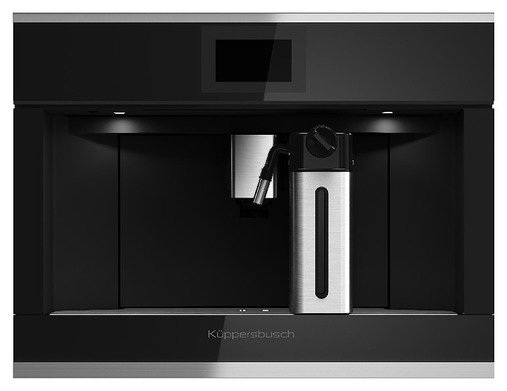 Встраиваемая кофемашина Kuppersbusch CKV 6800.0 S1 серии K.8 предназначена для приготовления кофе и напитков на его основе в гостиницах, офисах и домашних условиях. Модель оснащена встроенной кофемолкой, высокоэффективным насосом, системой нагрева с термоблоком и парогенератором, кабелем питания с евровилкой, расположенным на верхней фронтальной панели полноцветным сенсорным TFT-дисплеем управления и индикации с символьными, графическими, цифровыми и текстовыми сегментами. Фасадные панели выполнена из стекла с черной поверхностью и декоративными горизонтальными рамками Stainless steel с поверхностью цвета нержавеющей стали, сопло подачи пара и горячей воды – из нержавеющей стали.