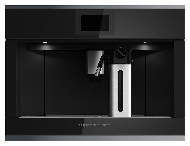 Встраиваемая кофемашина Kuppersbusch CKV 6800.0 S3 серии K.8 предназначена для приготовления кофе и напитков на его основе в гостиницах, офисах и домашних условиях. Модель оснащена встроенной кофемолкой, высокоэффективным насосом, системой нагрева с термоблоком и парогенератором, кабелем питания с евровилкой, расположенным на верхней фронтальной панели полноцветным сенсорным TFT-дисплеем управления и индикации с символьными, графическими, цифровыми и текстовыми сегментами. Фасадные панели выполнена из стекла с черной поверхностью и декоративными горизонтальными рамками Silver Chrome с серебристой поверхностью, сопло подачи пара и горячей воды – из нержавеющей стали.