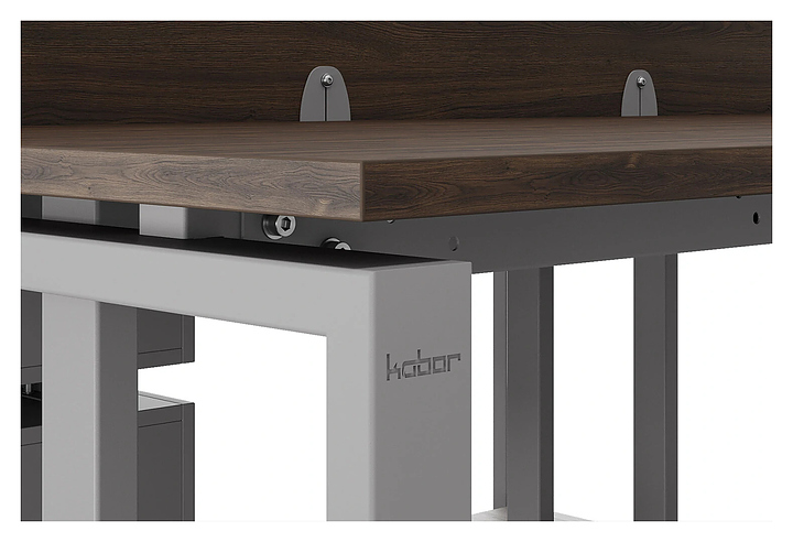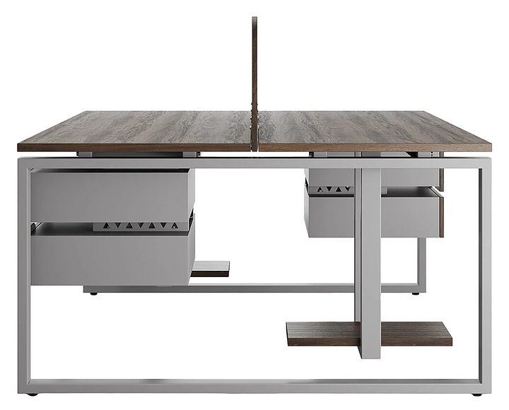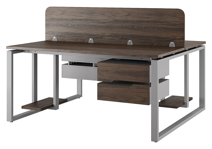 Офисный стол Кобор O1/2-160/140 aluminum/charlston на 2 рабочих места используется в офисных помещениях и кабинетах руководителей. Модель оснащена O-образными опорами. Каркас и опоры выполнены из металла, выкрашенного в цвет алюминиевый металлик (RAL9006), столешница – из ламинированной древесно-стружечной плиты (ЛДСП) цвета дуб чарльстон (H3154 ST36). Дополнительные характеристики: