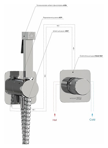 Встраиваемый комплект для биде со шлангом Wasserkraft Mosel 4600 A4651.271.057.136 хром, никель