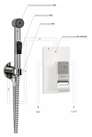 Встраиваемый комплект для биде со шлангом Wasserkraft Aller 1060WHITE A010656WHITE комбинированный