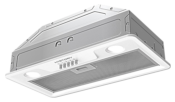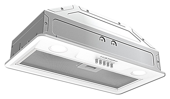 Встраиваемая кухонная вытяжка HiSTORY CI 65B1 FWH предназначена для очистки воздуха от продуктов горения, копоти и запахов в процессе приготовления пищи путем принудительной вентиляции в домашних условиях. Модель оснащена вентилятором с электродвигателем K25, 2 круглыми светодиодными светильниками, кабелем питания с вилкой и электронной панелью управления с нажимными клавишами. Корпус выполнен из высококачественной стали, декоративная лицевая панель прямоугольной формы – из стали с покрытием термостойкой эмалью белого цвета, жироулавливающий фильтр – из алюминия, фурнитура с серебристой поверхностью. В комплект поставки входят набор монтажных креплений, 2-лепестковый антивозвратный клапан, шаблон для монтажа, инструкция по эксплуатации, гарантийный талон и заводская упаковка. Особенности: